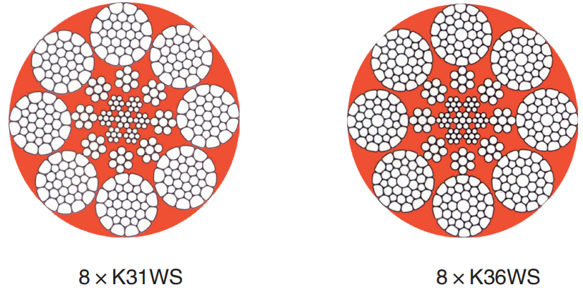 6×K36WS or 8×K36WS with IWRC – flexible yet strong, suitable for draglines and shovels.